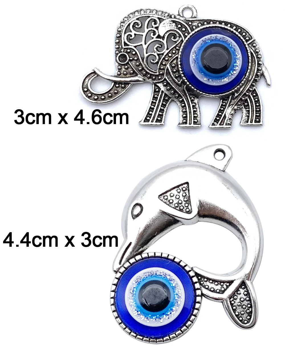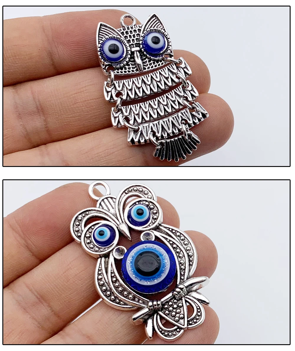 Metal Evil Eye Charms Pendant For DIY Decoration Keychain Owl Sun Elephant Dolphin Palm Turkish Blue Eye Handmade Jewelry Making