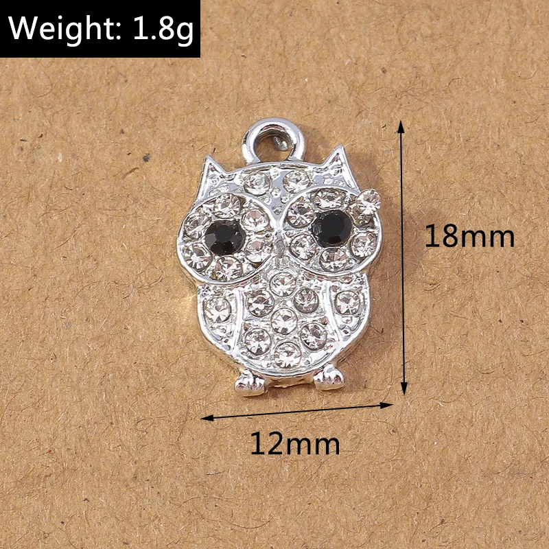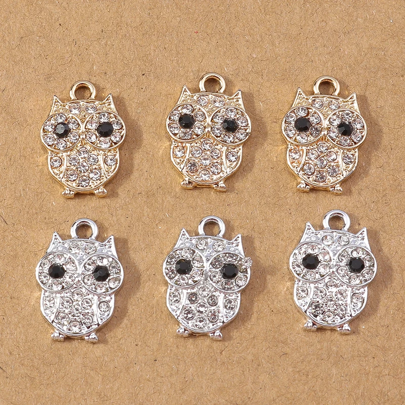 10pcs Cute Cartoon Crystal Owl Charms Animal Pendants Charm for Jewelry Making Earrings Necklace DIY Craft Supplies